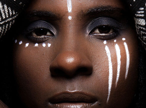 “Tonight, we’re using’s M·A·C ‘s Pro Longwear Nourishing Waterproof Foundation, which has an incredible seamless finish to it. I’m giving her face an even coat by layering the product on, which will make her skin look really beautiful for the performance, and since it’s waterproof it’s perfect! Sharaya likes to play around with her lip colour a lot – blue lips and black lips, which I think is interesting and inspiring. I like that about her, so I’m going to use Night Moth, and keep it matte, because it contrasts sharply against her skin tone and looks great with the silver she’s wearing. On her skin, it brightens up her whole face and looks glamorous with a bit of an edge. It’s a beautiful black-y, brown, merlot colour – one of my favorites. Not goth, but maybe a little glam goth!”
