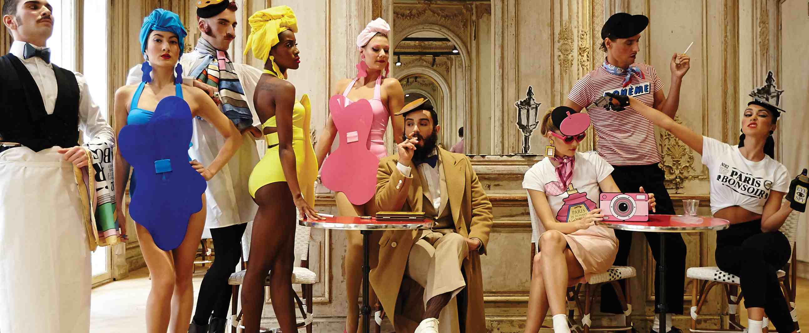 Yaz Bukey: Well, I always come up with the story first. This season I was watching a lot of Judy Garland and Liza Minnelli movies. The collection is all about Hollywood’s golden age, so I’ve called it the “Golden Yaz.” It’s about the tension between these different characters – the nurse who’s handing out “Forever Young” pills and the alcoholic who is mixing up a bottle of champagne with her microphone. Then there is the girl who hasn't been invited but comes anyway. No one takes her picture, so she's just taking selfies on the red carpet. She’s more vulgar; we’ll need lots of blusher for her!