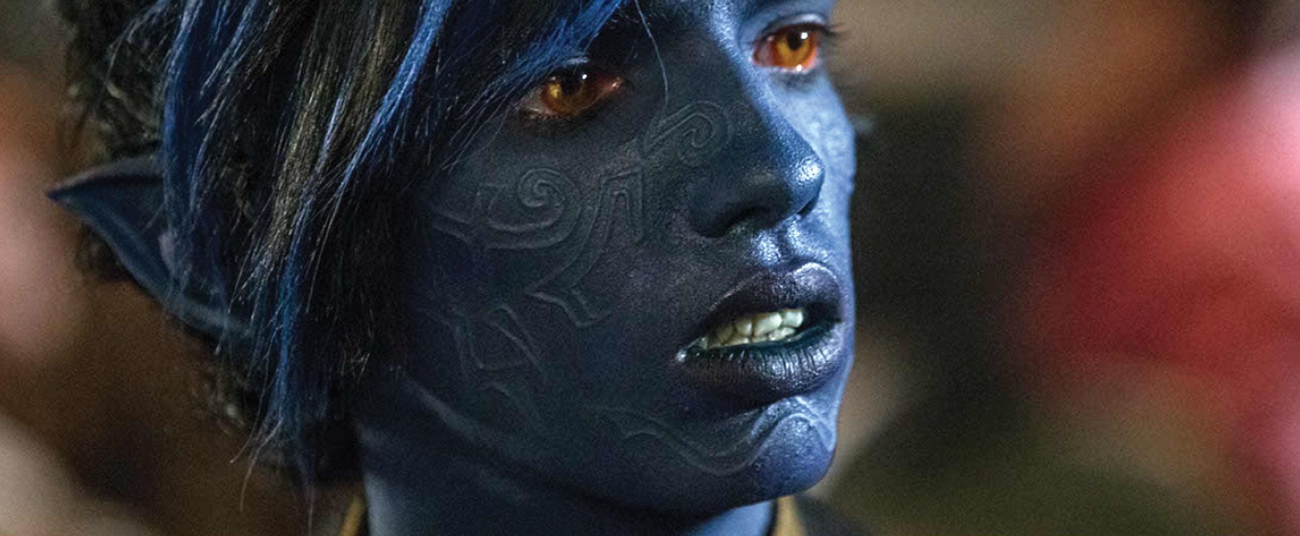 “When you read the X-Men comics, Nightcrawler is always portrayed as a dark silhouette with this long, cat-like tail, almond-shaped yellow eyes, pointy ears and crouching down in a very large, cat-like manner,” he says. “The Alan Cumming version was perhaps a bit more goblin-like and I thought it would be great for our character to show some of these feline and elegant qualities. I always try to create makeup that is in harmony with the facial features of my actors, so it was important to complement Kodi’s youthful and soft features.”