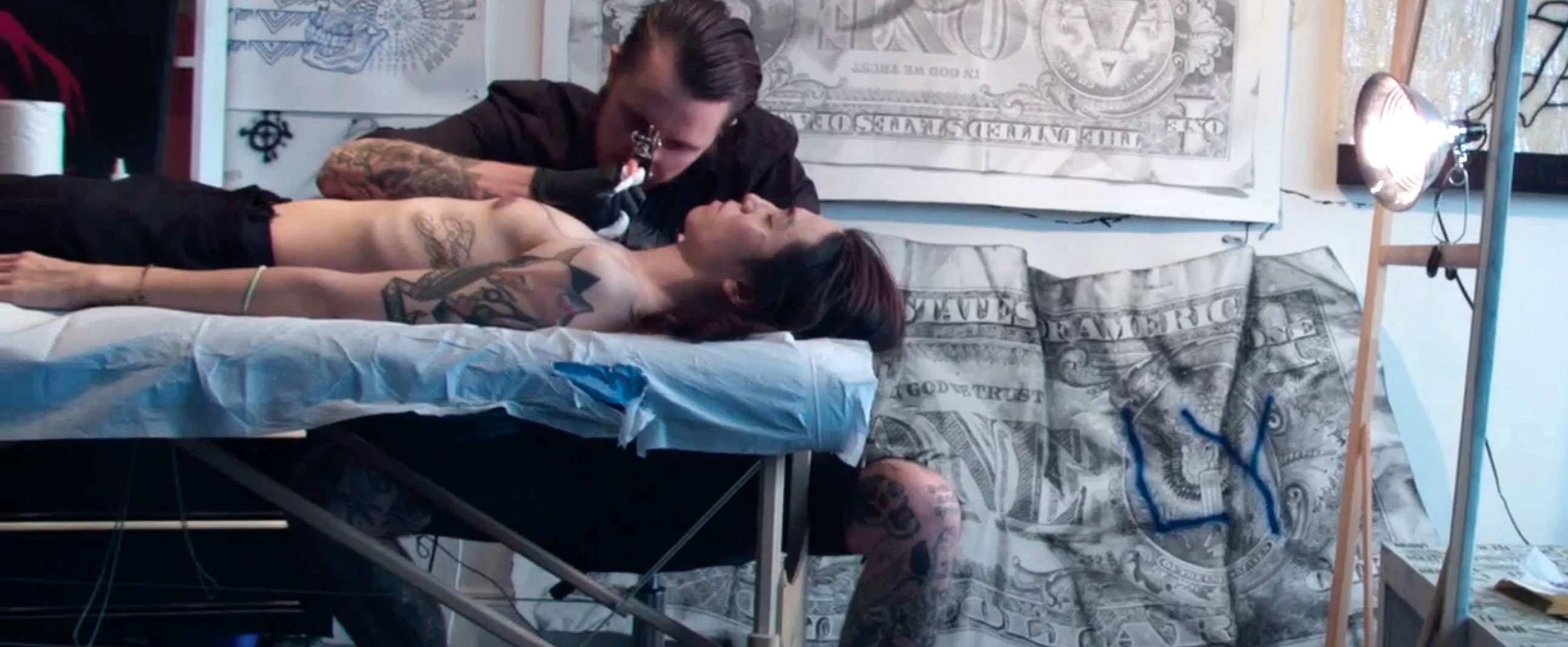 Here, in an intimate collaboration with the renowned filmmaker and photographer Steven Sebring, known for his enduring creative relationship with punk hero Patti Smith, Scott meets three couples who want to get each other’s names on their skin, and gives them tattoos…just for the love of it.